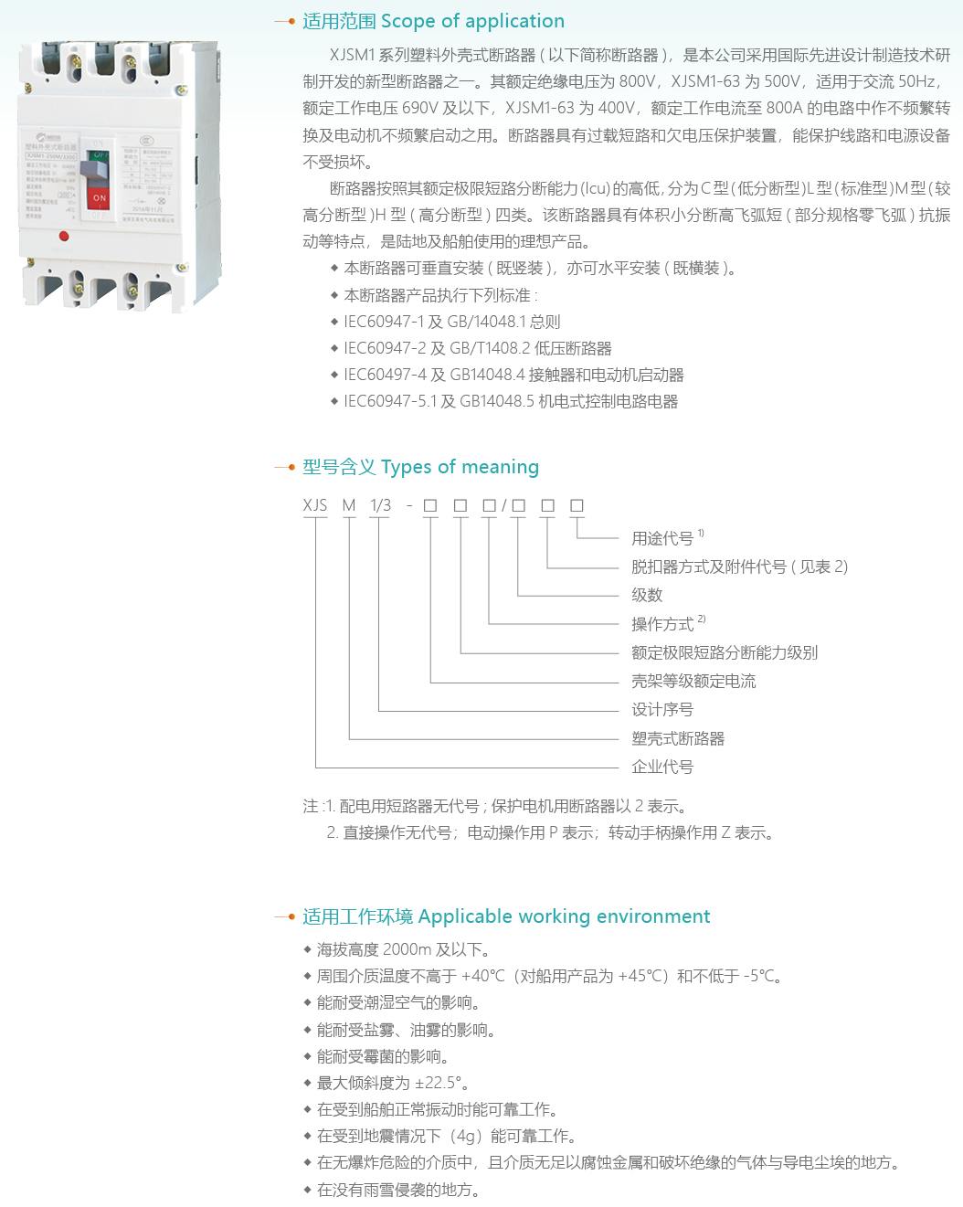 XJSM1系列塑料外殼式斷路器