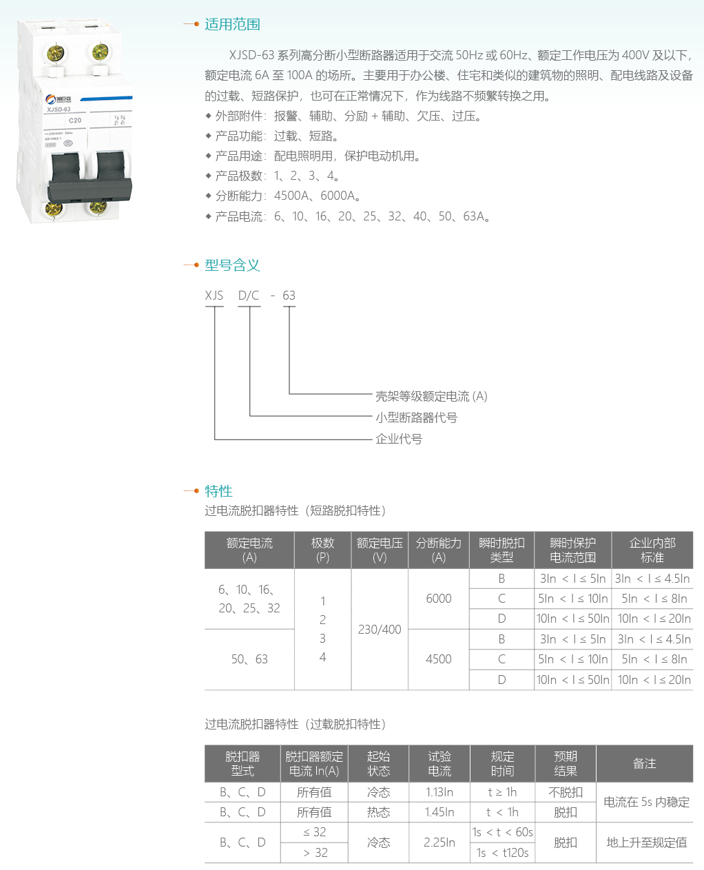 XJSD-63系列小型斷路器