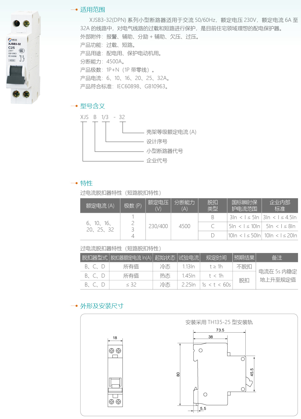 XJSB3-32“相線+中性線”斷路器