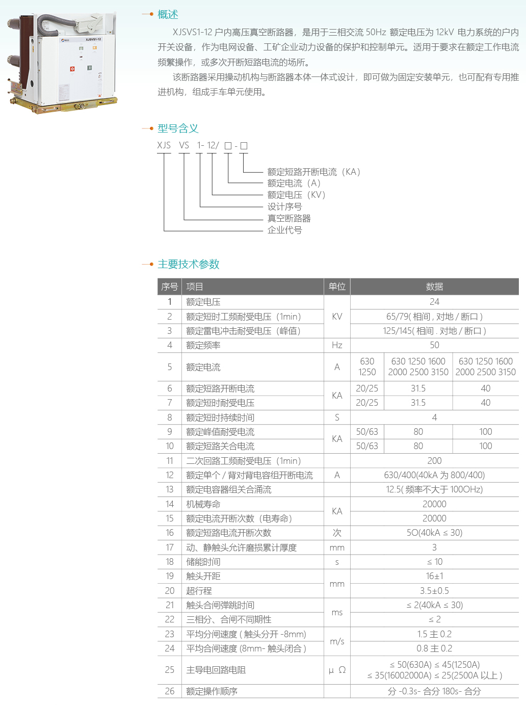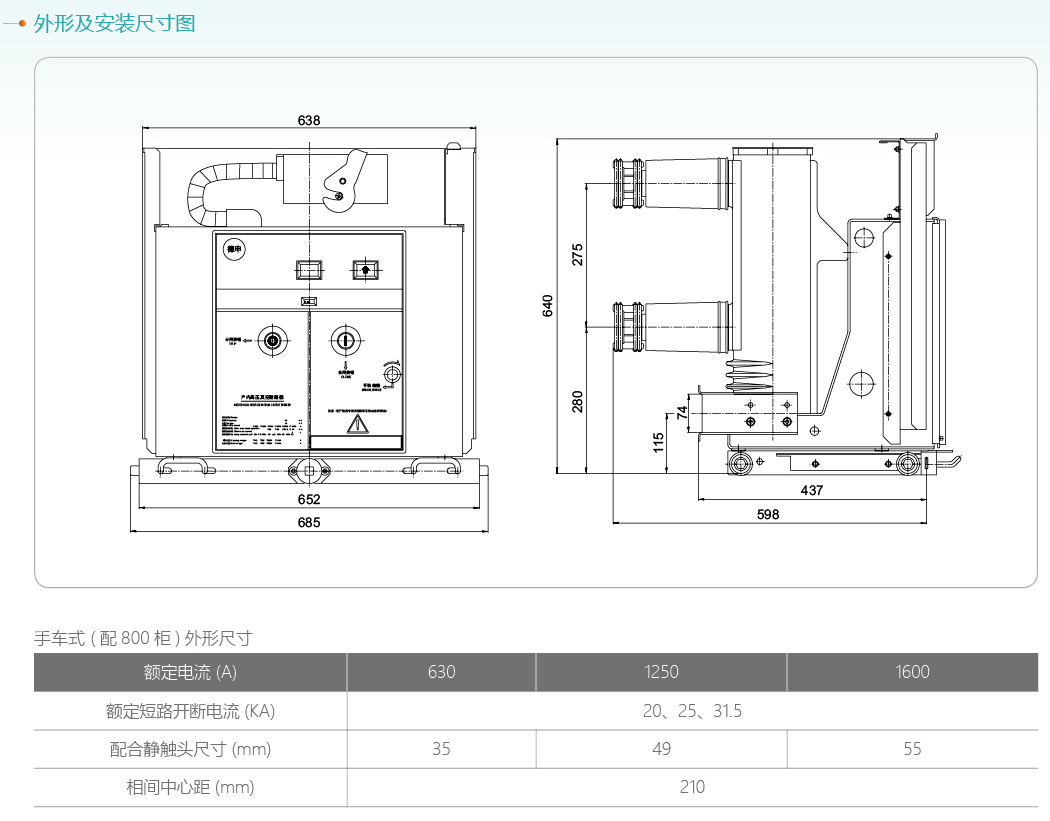 XJSVS1-12手車式戶內高壓真空斷路器