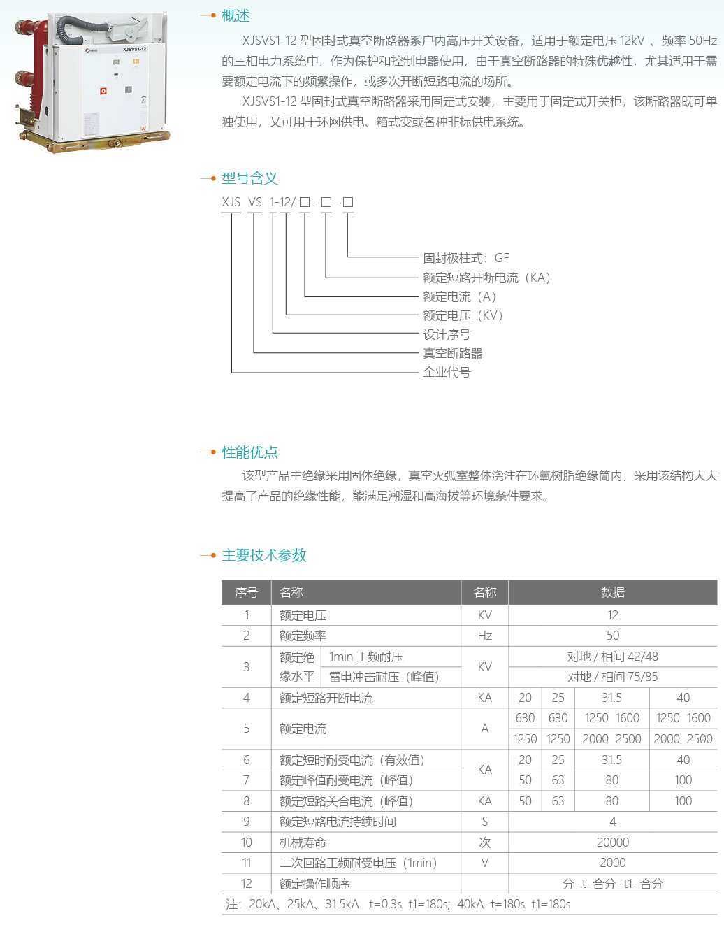 XJSVS1-12固封式戶內(nèi)高壓真空斷路器
