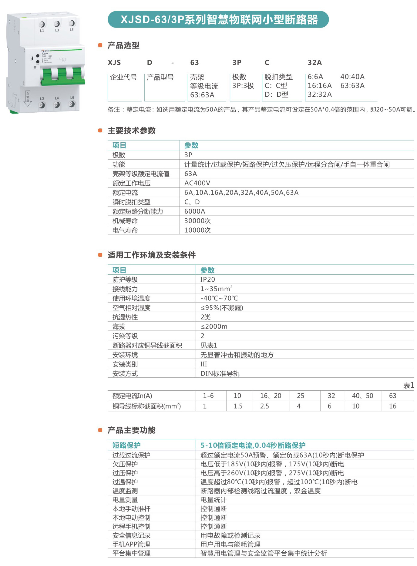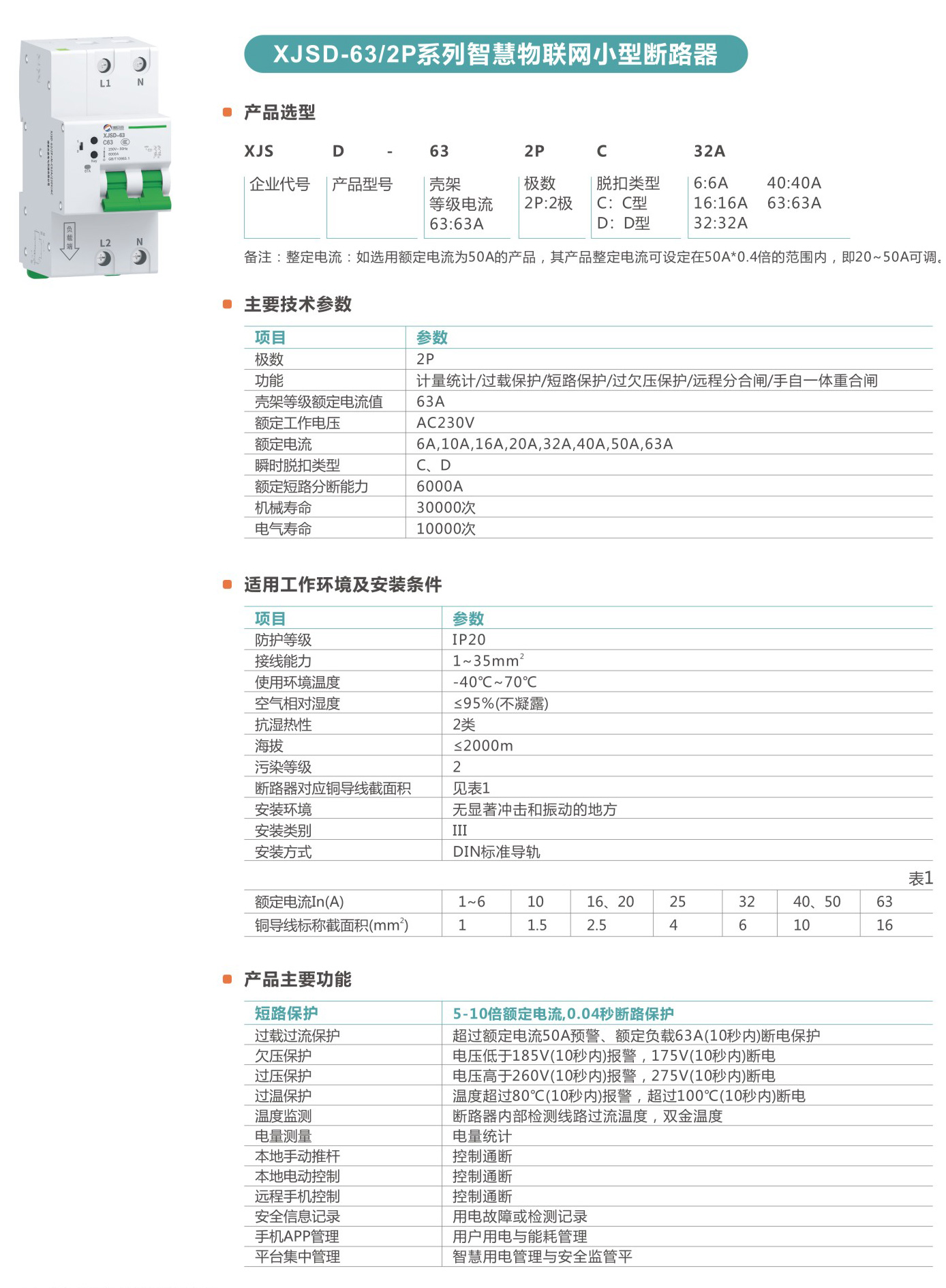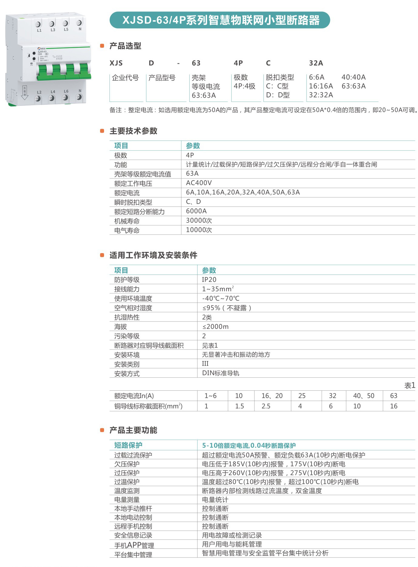 XJSD-63系列智慧物聯(lián)網(wǎng)小型斷路器