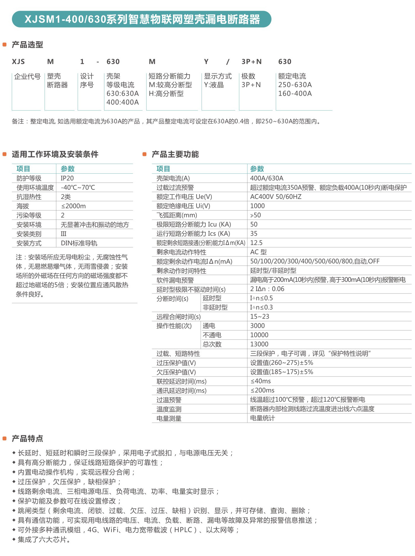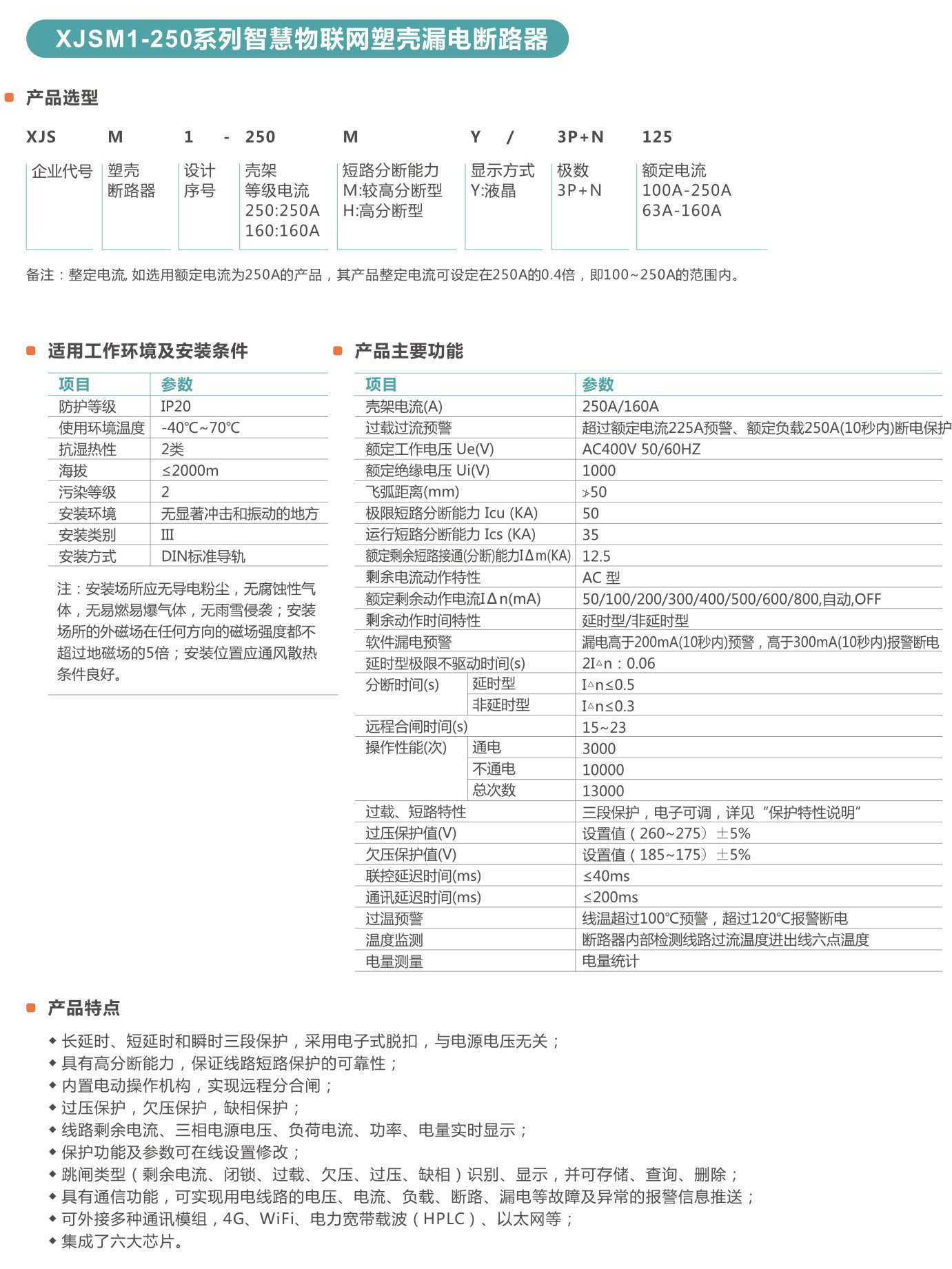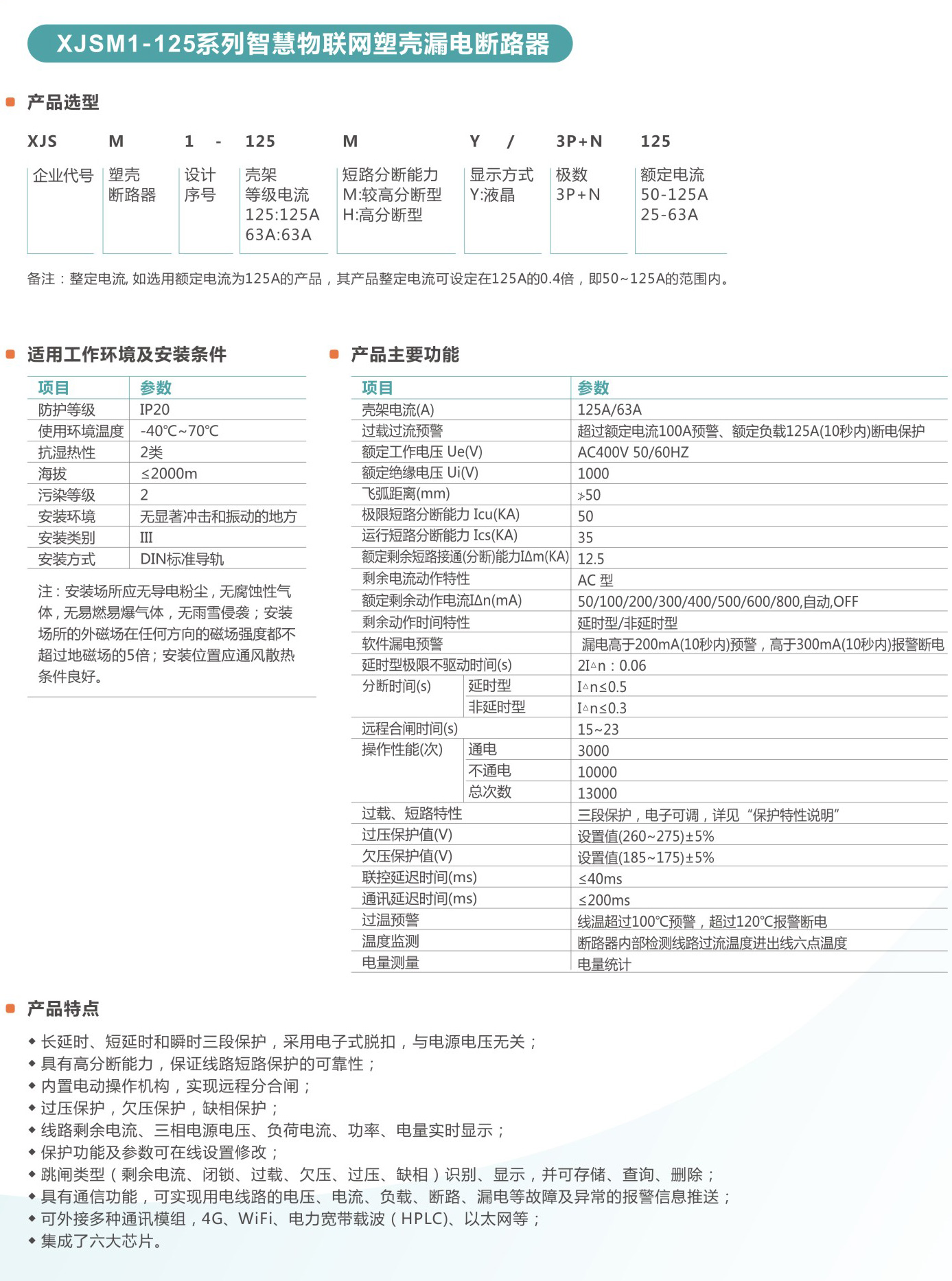 XJSM1系列智慧物聯(lián)網(wǎng)塑殼漏電斷路器